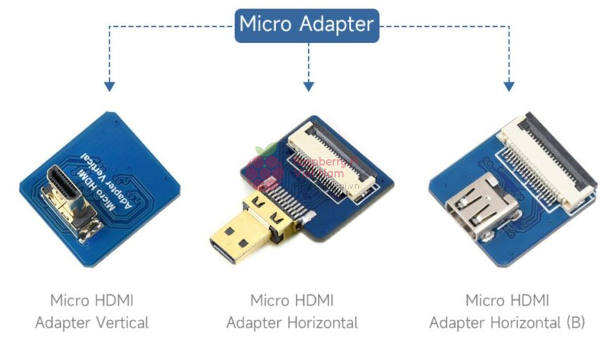 Các cáp adapter Micro HDMI được chia thành ba loại chính. Micro HDMI Adapter Vertical có thiết kế thẳng đứng, sử dụng đầu Micro HDMI Male Plug to Female Connector với kích thước 17,5 × 16,0 mm. Micro HDMI Adapter Horizontal được thiết kế nằm ngang, cũng dùng Micro HDMI Male Plug to Female Connector nhưng mỏng và dài hơn, kích thước 27,6 × 18,0 × 4,5 mm. Cuối cùng, Micro HDMI Adapter Horizontal (B) là loại nối Micro HDMI Female to Female Connector, có kích thước 17,5 × 16,0 mm, phù hợp để ghép nối trực tiếp hai đầu cáp Micro HDMI cái với nhau.
