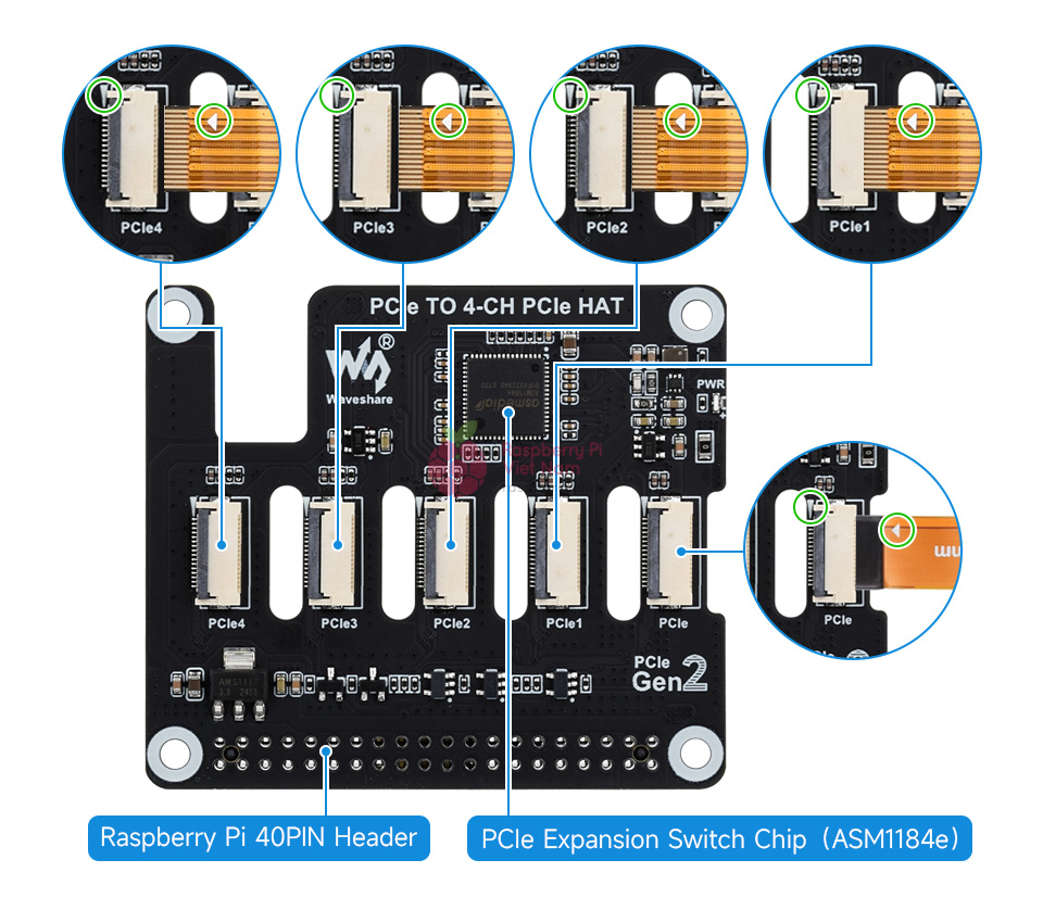 Kết hợp linh hoạt để dễ dàng xếp chồng nhiều PCIe HAT, mở rộng nhiều PCIe HAT