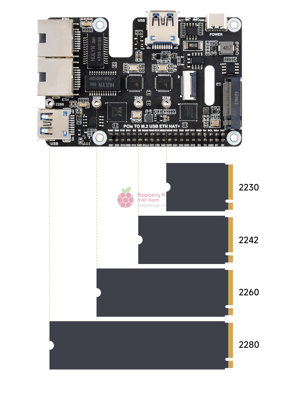 Quý khách có thể tham khảo hướng dẫn tại đây http://www.waveshare.com/wiki/PCIe_TO_M.2_USB_ETH_HAT+