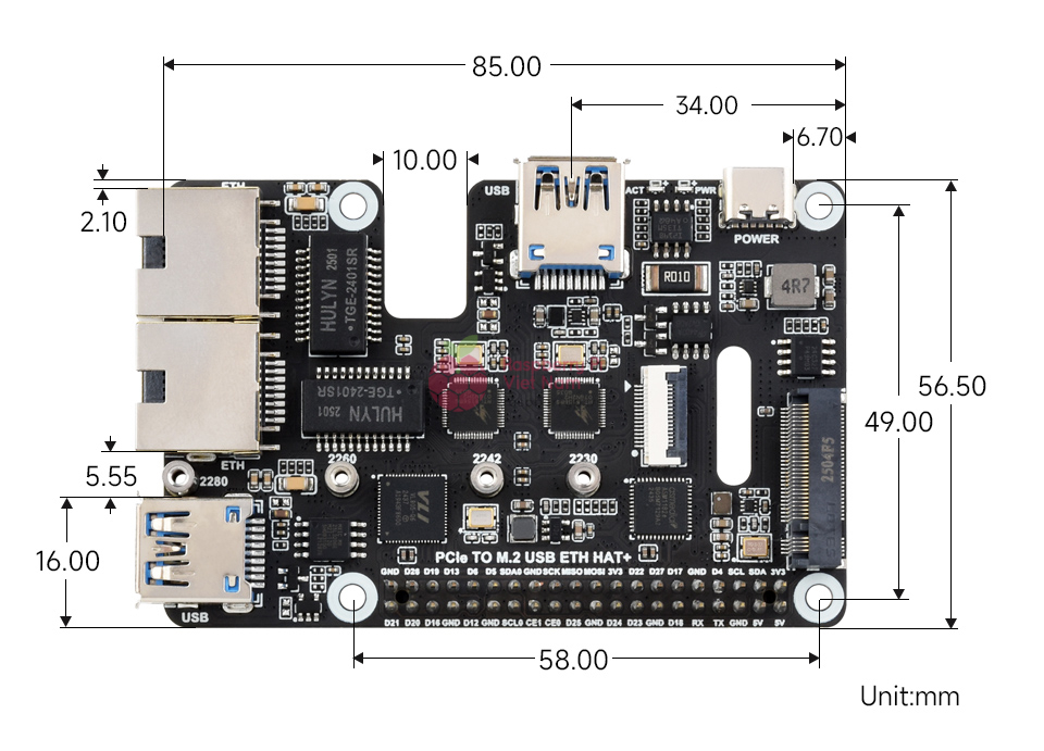 Mạch chuyển đổi PCIe sang USB 3.2 Gen1 / 2.5G ETH / M.2 NVMe cho Raspberry Pi 5, hỗ trợ ổ SSD M.2 NVMe, 2 cổng USB 3.2 và 2 cổng Ethernet, đọc/ghi tốc độ cao, HAT + Tiêu chuẩn, không cần cài đặt driver