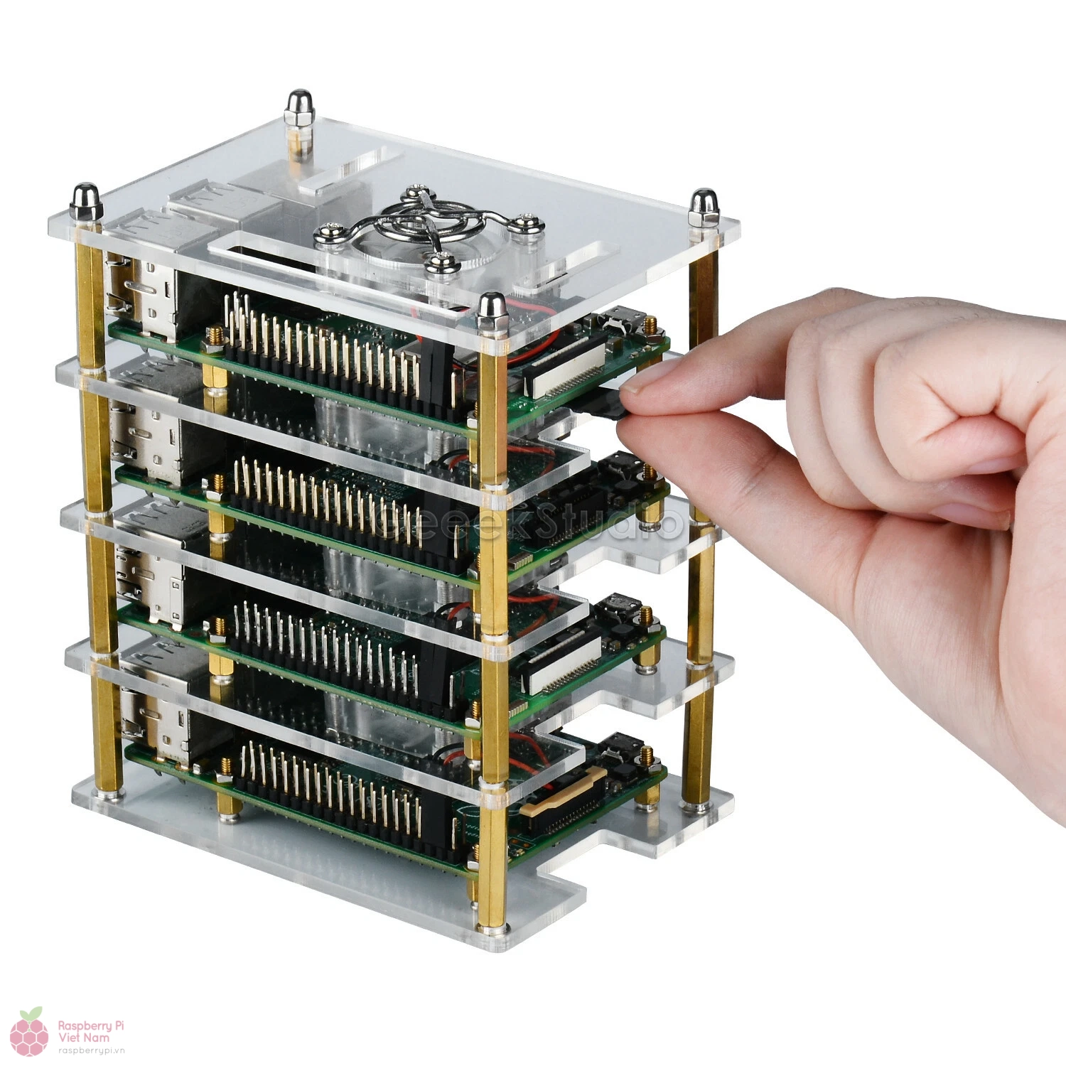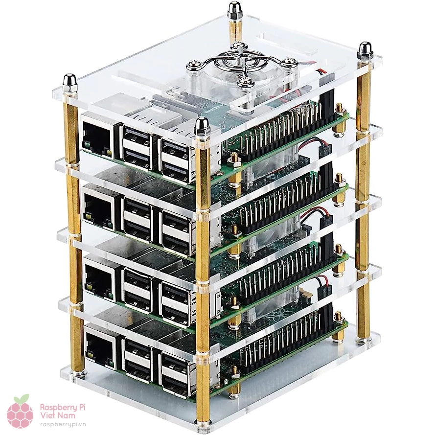 - Vỏ hộp có thể xếp chồng lên nhau, cho phép bạn ghép bốn bo mạch Raspberry Pi lại với nhau.