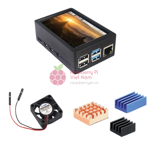 - Vỏ có thể được sử dụng với Màn hình cảm ứng 3,5 inch hoặc với quạt làm mát. Nó không cho phép sử dụng cả hai (quạt hiển thị và quạt làm mát) cùng một lúc.