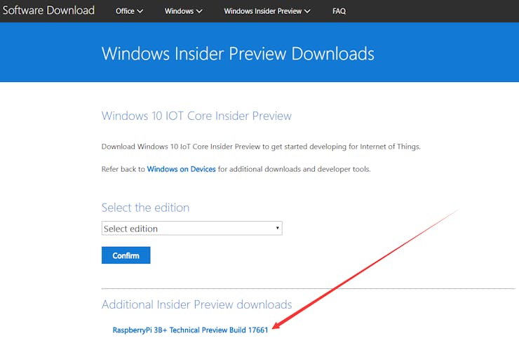 Công việc tiếp theo là đến đường dẫn sau đây và tải “RaspberryPi 3B+ Technical Preview Build 17661” với hướng dẫn ở dưới nhé: